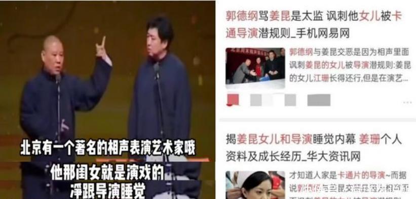 后来网上出现了一种说法“郭德纲骂姜昆女儿”,这么说的话就属于造谣了,因为郭德纲确实没提名也没提姓,是自媒体将郭德纲的台词指向了姜昆。