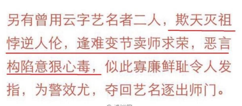 实际上,郭德纲没在家谱里指名道姓,他写的是“曾用云字艺名者二人”,至少从字面上看不出他是在骂何云伟和曹云金。